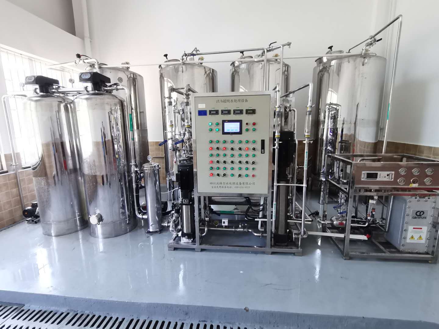 采用多級預(yù)處理器過濾,雙膜法及雙級反滲透工藝,進口陶氏反滲透膜片,配備EDI電除鹽膜塊,更深層次去除水中離子,